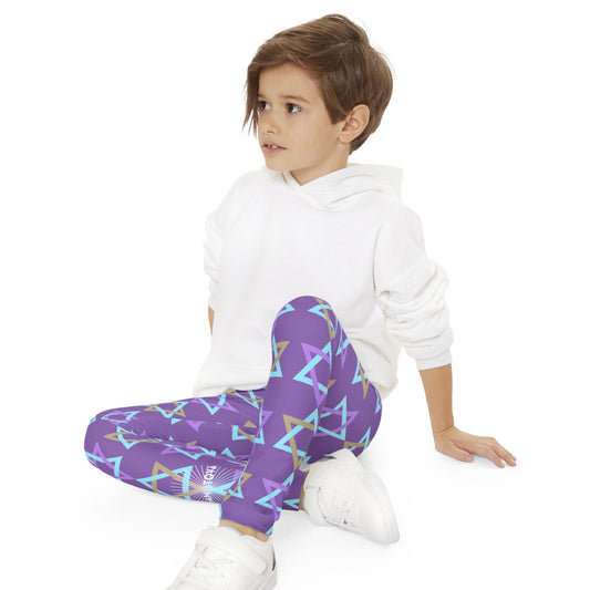 David Beige, Purple, & Light Blue Magan David Pattern on Purple Youth Full-Length Leggings