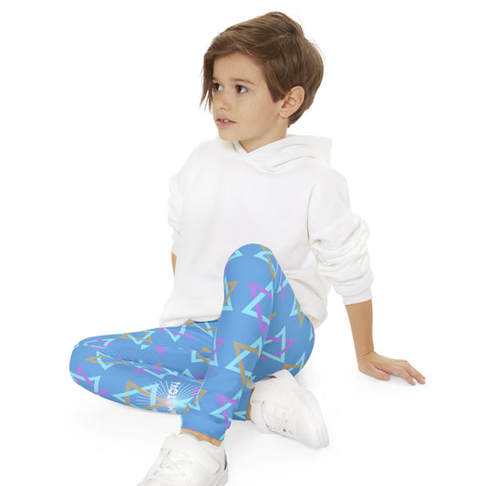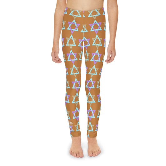 David Beige, Purple, & Light Blue Magan David Pattern on Blue Youth Full-Length Leggings