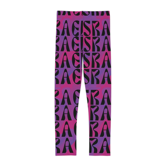Flow & Squiggle Israel Pink & Coral on Purple Kids Leggings