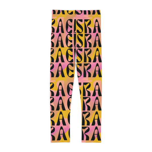 Flow & Squiggle Israel Pink & Coral on Yellow Kids Leggings