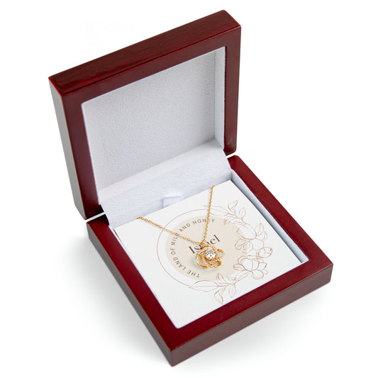 Israel, The Land of Milk And Honey Beige Floral Circle Love Knot Necklace