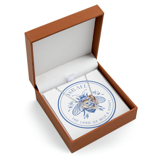 Israel Blue Bee Badge Twin Hearts Necklace in Box