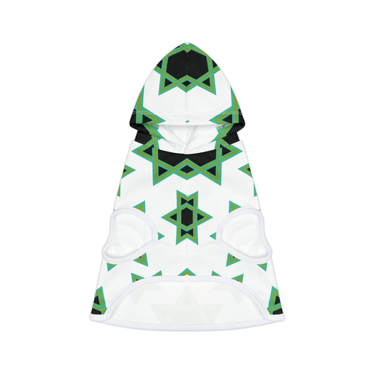 Akira Turquoise & Green Magan David Pattern on White Pet Hoodie