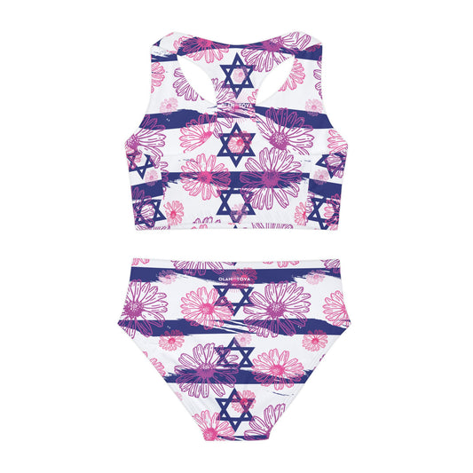 Israel Flower Summer Swim Girls Two Piece Swimsuit
