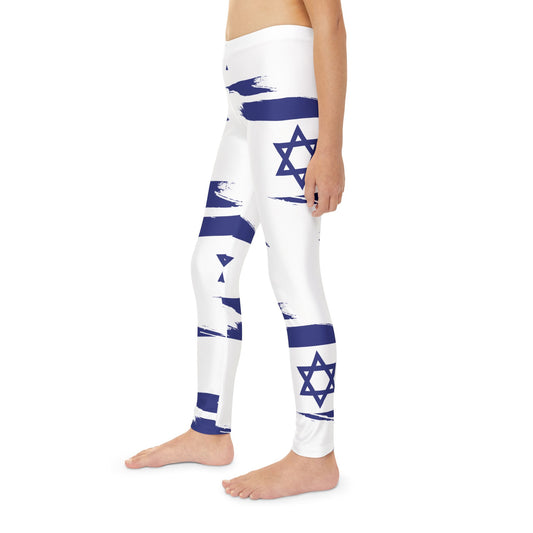 Ilay Larger Israel Flag Pattern on Blue Youth Full-Length Leggings