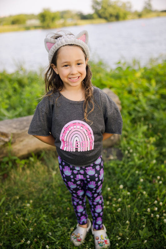 Serena Israel Pink & Turquoise Peace on Black Pattern Kids Sports Tee