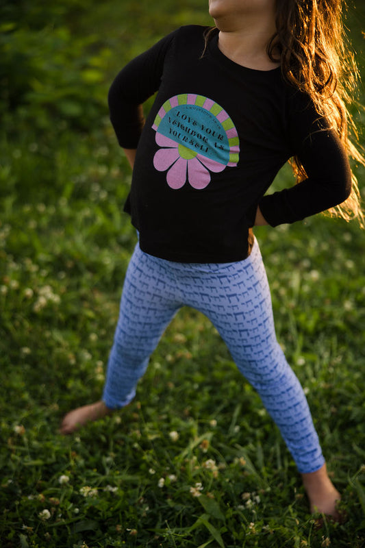 Chaim Double Chai Pattern on Light Blue Kids Leggings