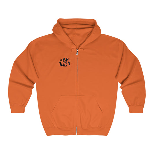 FCK HMS Script Tan & Orange Unisex Heavy Blend™ Full Zip Hooded Sweatshirt