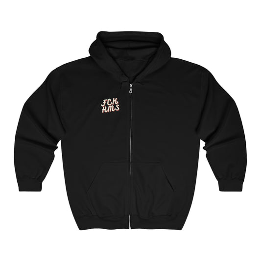 FCK HMS Script Black & Red Unisex Heavy Blend™ Full Zip Hooded Sweatshirt