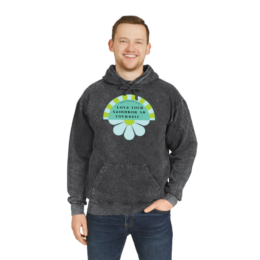 Blue & Neon Green Love Your Neighbor Unisex Mineral Wash Hoodie
