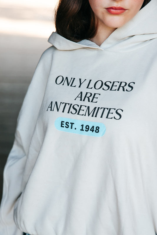 Only Losers Are Antisemites 1948 Blue Women's Cinched Bottom Hoodie
