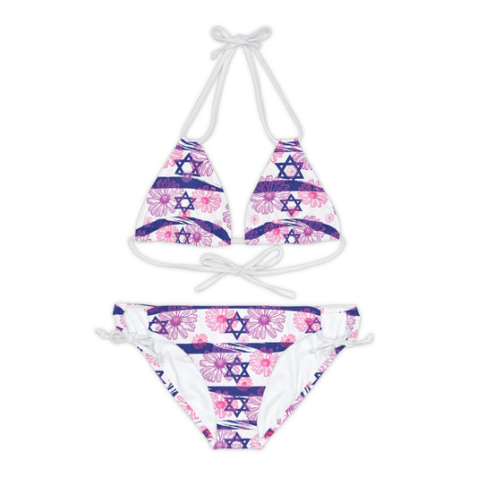 Ilay Larger Israel Flag Pattern on White Strappy Bikini Set