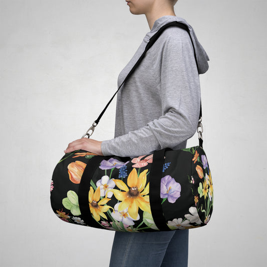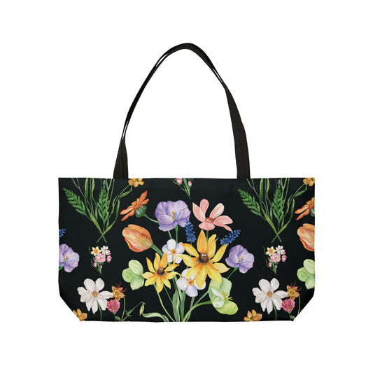 Yvonne Floral Pattern on Black Weekender Tote Bag