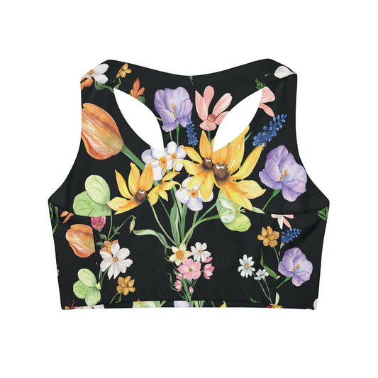 Yvonne Floral Pattern on Black High Neck Crop Waterproof Sports Top