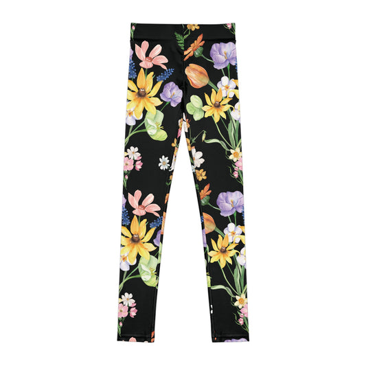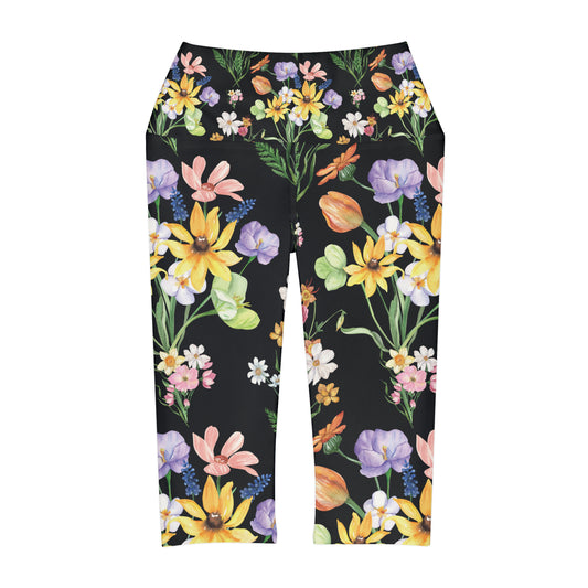 Yvonne Floral Pattern on Black Yoga Capri Leggings