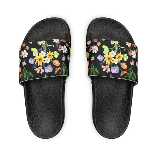 Yvonne Floral Pattern on Black Women's PU Slide Sandals