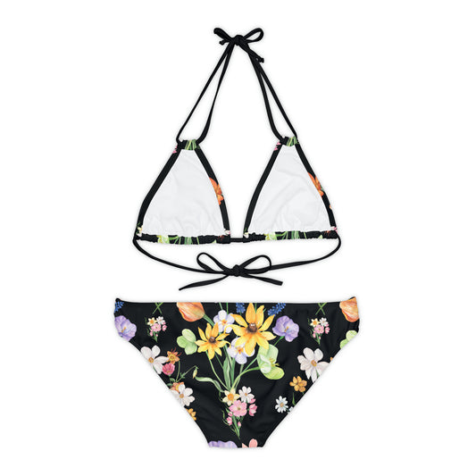 Yvonne Floral Pattern on Black Strappy Bikini Set