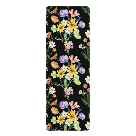 Yvonne Floral Pattern on Black Rubber Yoga Mat