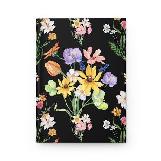 Yvonne Floral Pattern on Black Hardcover Journal Matte