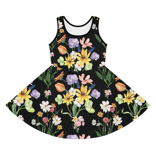Yvonne Floral Pattern on Black Girls' Sleeveless Sundress