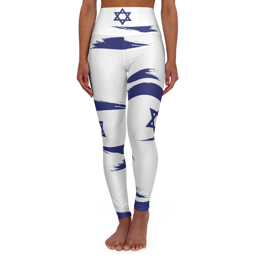Ilay Larger Israel Flag Pattern on White A High Waisted Yoga Leggings